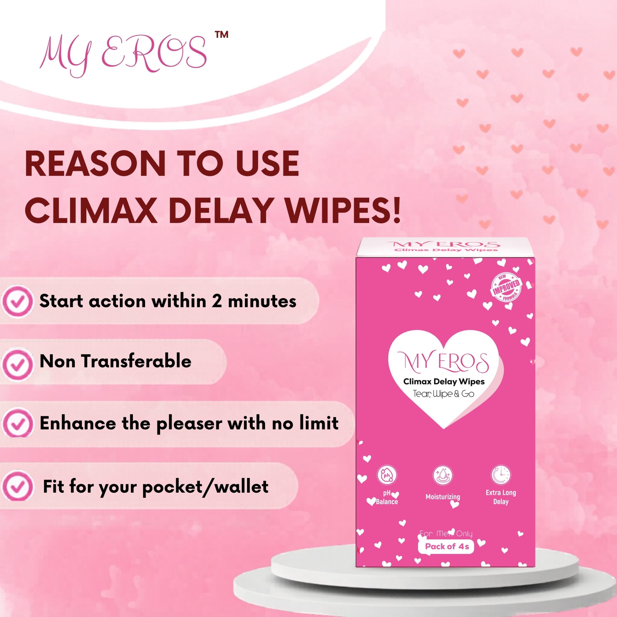 - MY EROS Climax delay wipes extend playtime, prolong fun, and delay the finish of your pleaser. Our products are formulated in best lab with the best quality ingredients and specially created under the expert guidance for your wellness needs.